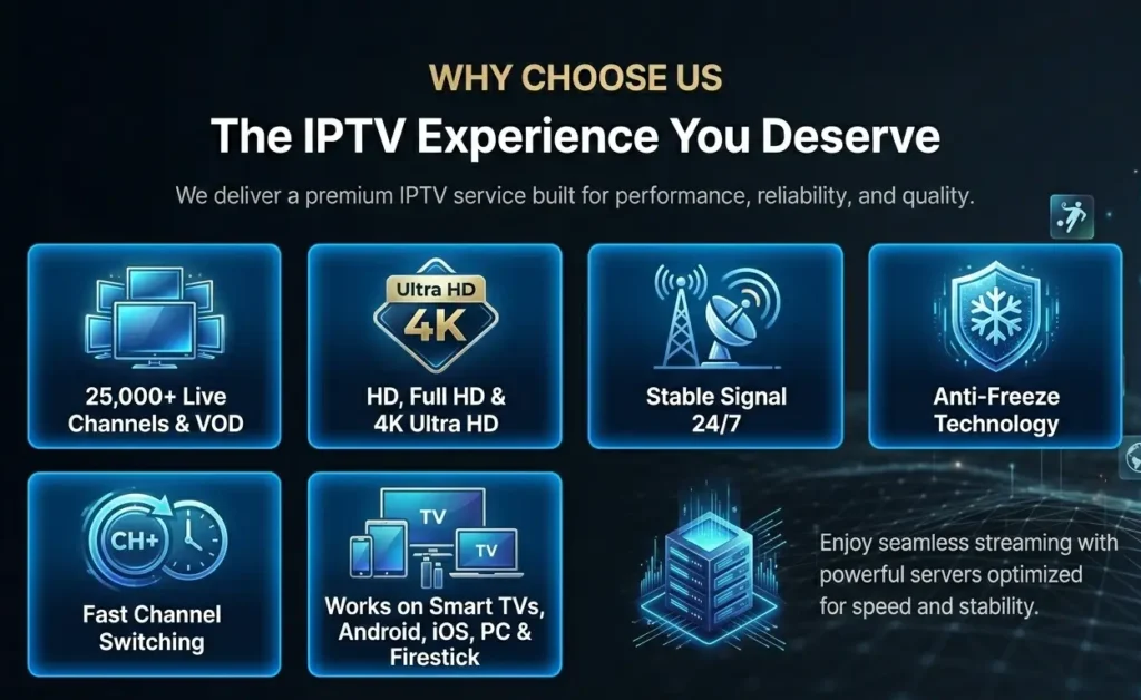 25,000+ Premium Channels • HD & 4K Quality • 24/7 Stable Signal